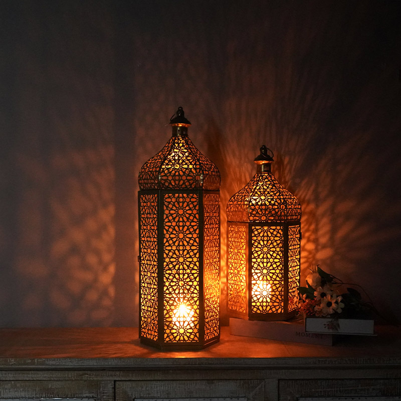 Moroccan candle holders are instantly recognizable for their exquisite craftsmanship and unique aesthetic. Typically made of metal such as brass or iron, these holders often feature detailed cutouts, pierced patterns, or filigree work that cast enchanting shadows when lit. Some designs include colorful glass panels or hand-painted elements, adding an exotic touch to your décor. Beyond their beauty, Moroccan candle holders are versatile—they can hold pillar candles, tea lights, or even LED candles, providing different lighting effects for various moods and occasions.