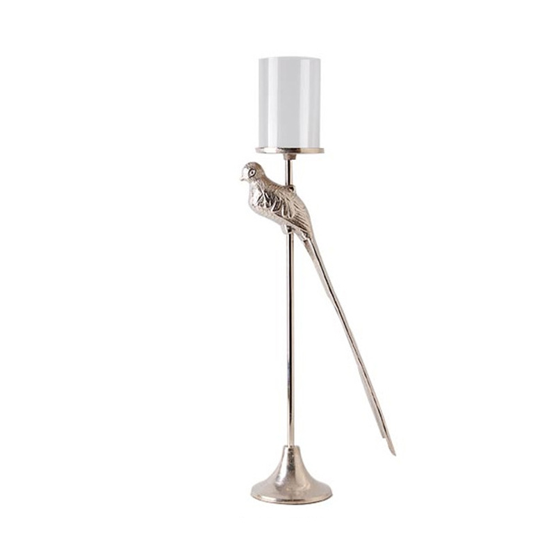 Vintage Silver Bird Aluminum Candle Holder with Glass Hurricane Cup